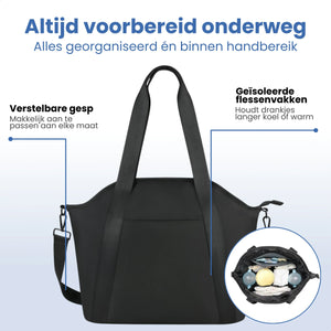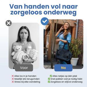 De Evite Luiertas kombinerer stil, plass og praktisk bekvemmelighet. Alt du trenger i én veske. Så du aldri går tom, uansett hvor du er.
