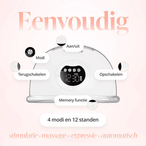 Evite Handsfree Brystpumpe er designet for mødre som ønsker å kombinere frihet, komfort og diskresjon. Trådløs, handsfree og stille som en hvisking, slik at du kan pumpe hvor og når du vil. Med 4 programmer, 12 nivåer og en myk passform tilpasser den seg enkelt ditt tempo. Ideell for hjemme, på farten eller på jobb.
