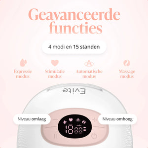 Evite Handsfree Brystpumpe er designet for mødre som ønsker å kombinere frihet, komfort og diskresjon. Trådløs, handsfree og stille som en hvisking, slik at du kan pumpe hvor og når du vil. Med 4 programmer, 15 nivåer og en myk passform tilpasser den seg enkelt ditt tempo. Ideell for hjemme, på farten eller på jobb.