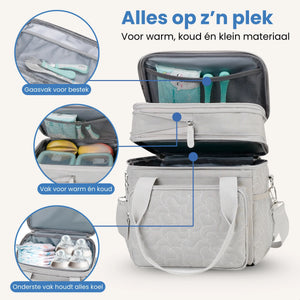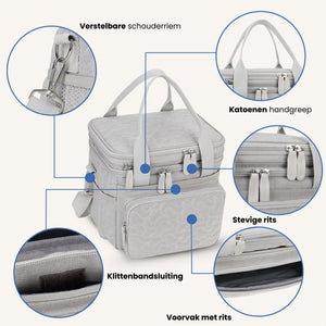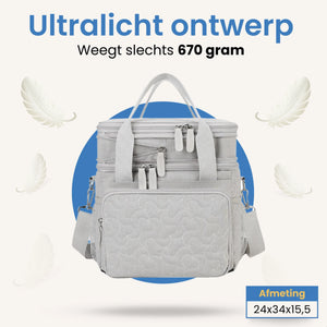 De Evite Luxe kjølebag holder melk eller mat varm i flere timer og er designet for mødre som ønsker funksjonalitet uten å gå på kompromiss med utseendet. Ideell for reise, jobb eller dagsturer.