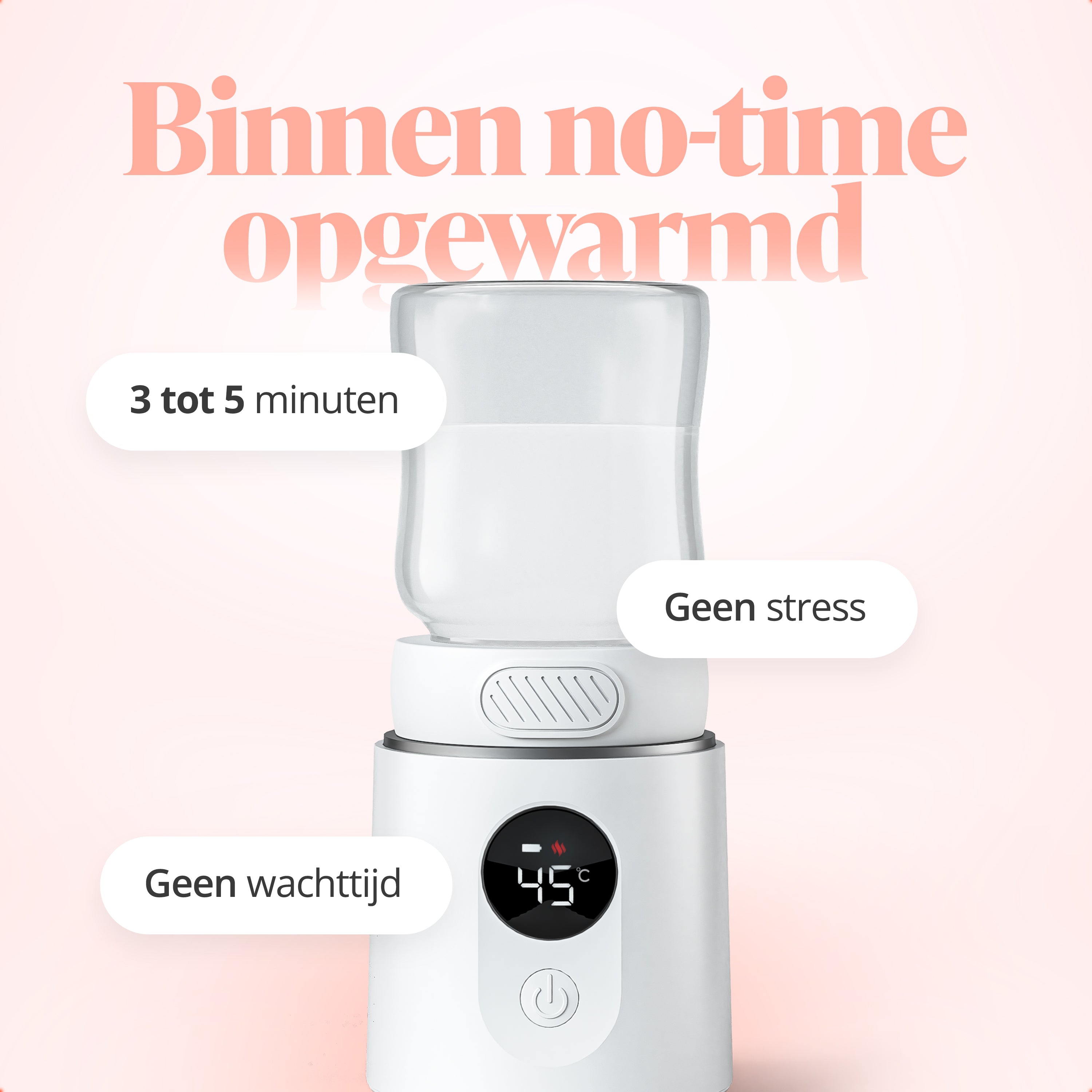 Het stijlvolle, compacte design met een krachtige 11.500 mAh batterij warmt tot wel 14 flesjes op.