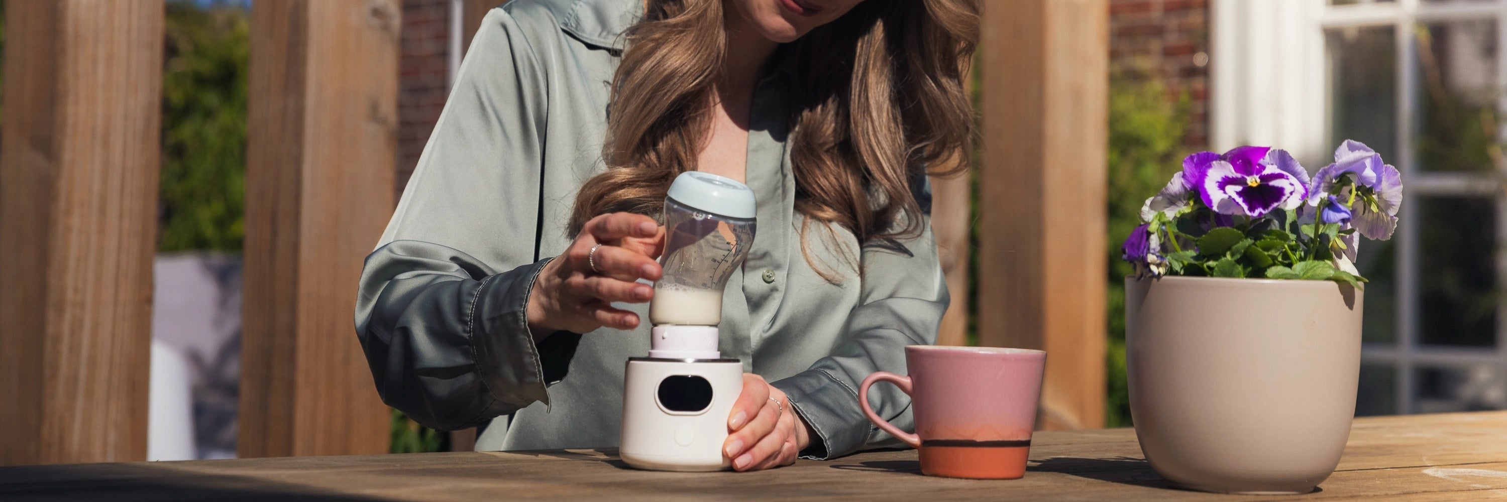 De flessenwarmer is draadloos en werkt ook onderweg. Laad hem de eerste keren volledig op voor het beste resultaat.