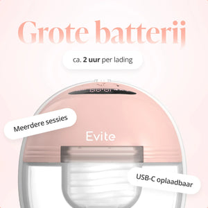 The Evite breast pump is quiet, elegant, and completely hands-free. Designed to naturally support your milk production and provide you with comfort, wherever you are. Easy to clean, gentle to wear, and discreet in use, so you can pump without hassle and with all the freedom you deserve.