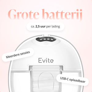 De Evite Handsfree Borstkolf is ontworpen voor moeders die vrijheid, comfort en discretie willen combineren. Draadloos, handsfree en fluisterstil zodat jij kunt kolven waar en wanneer je wilt. Met 4 programma's, 12 standen en een zachte pasvorm past hij zich moeiteloos aan jouw ritme aan. Ideaal voor thuis, onderweg of op werk.