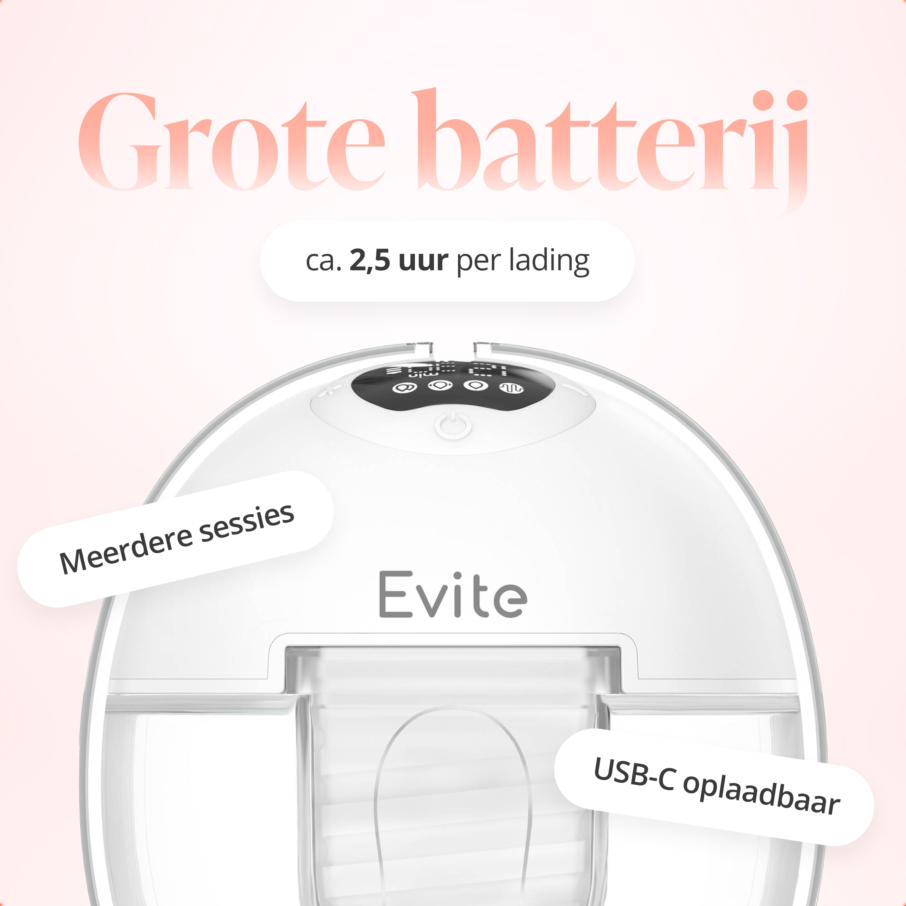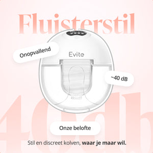 De handsfree borstkolf van Evite past zich aan jouw ritme aan. Licht om te dragen, fluisterstil in gebruik en ontworpen om je in alle rust te ondersteunen. Of je nu thuis bent, onderweg of aan het werk, je kolft comfortabel en discreet. Op jouw moment, op jouw manier.